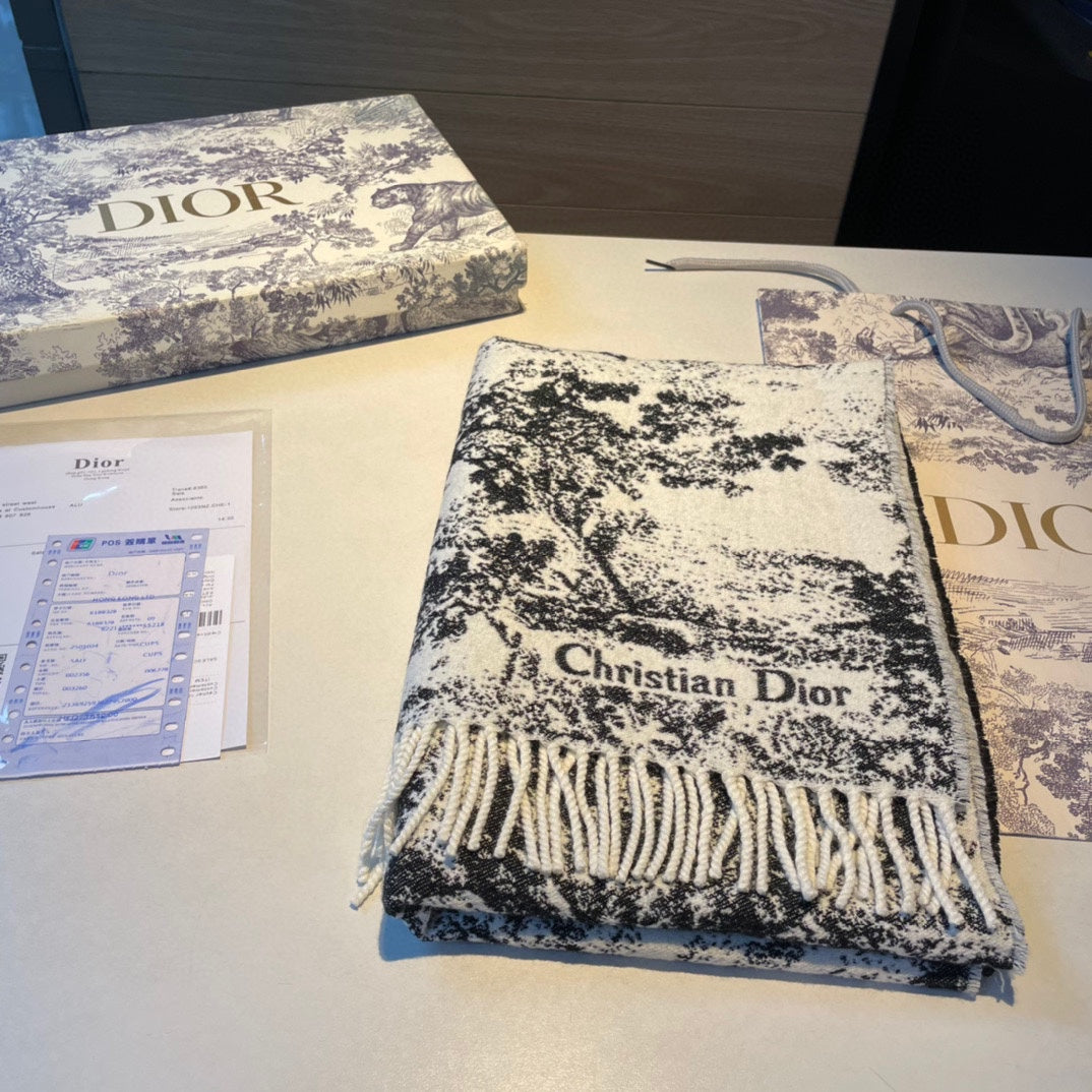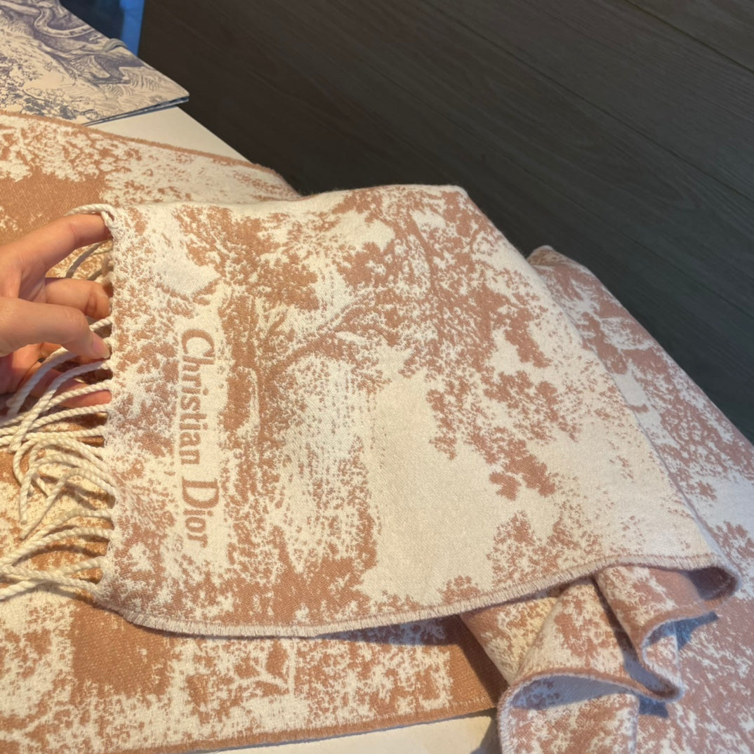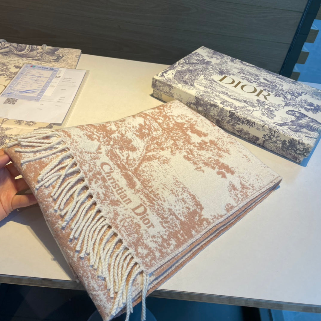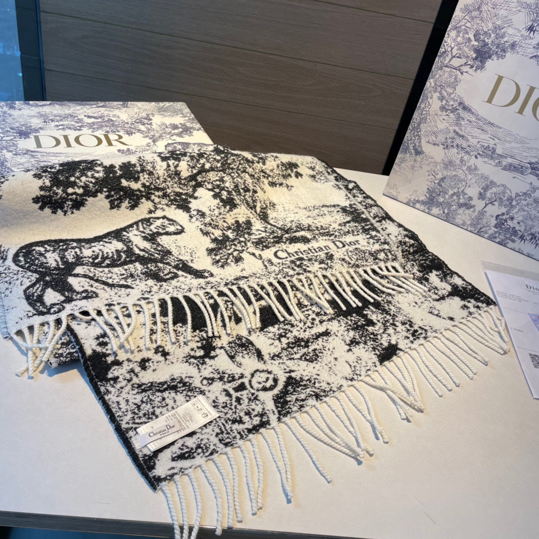 - The scarf offers a new take on the hallmark House motif. Crafted in a blend of cashmere and wool, the style features fringed edging and the signature. Long and enveloping, the scarf can be worn around the neck or draped over the shoulders.