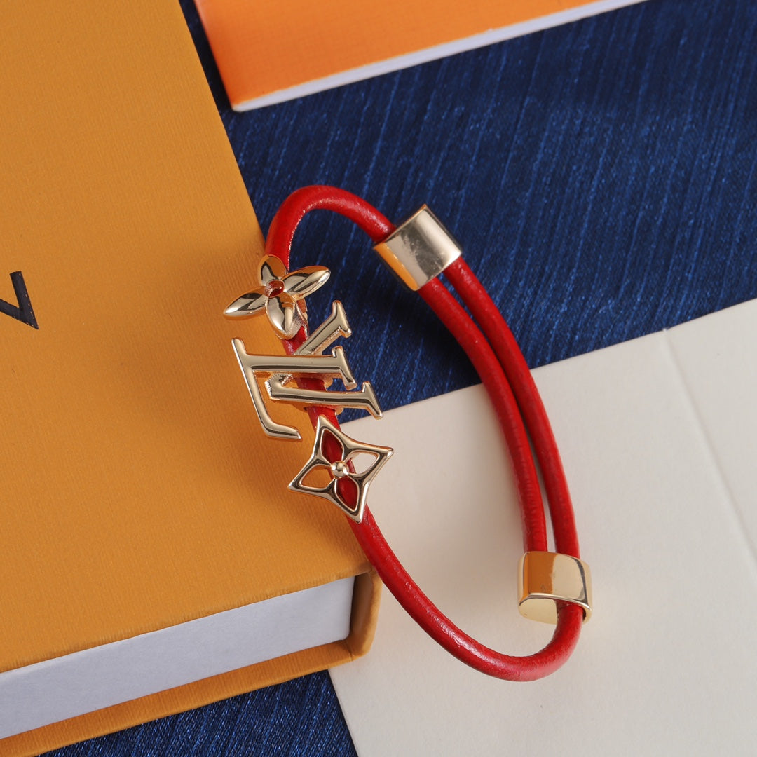 - The cool, casual Iconic Flower bracelet offers an original way to sport most famous signature. A fine leather cord is highlighted with the emblematic Initials surrounded by two Monogram Flowers in gold-tone metal. Fully adjustable to fit any wrist, it’s fun and easy to wear – alone or in combination for a glamorous colorful effect.