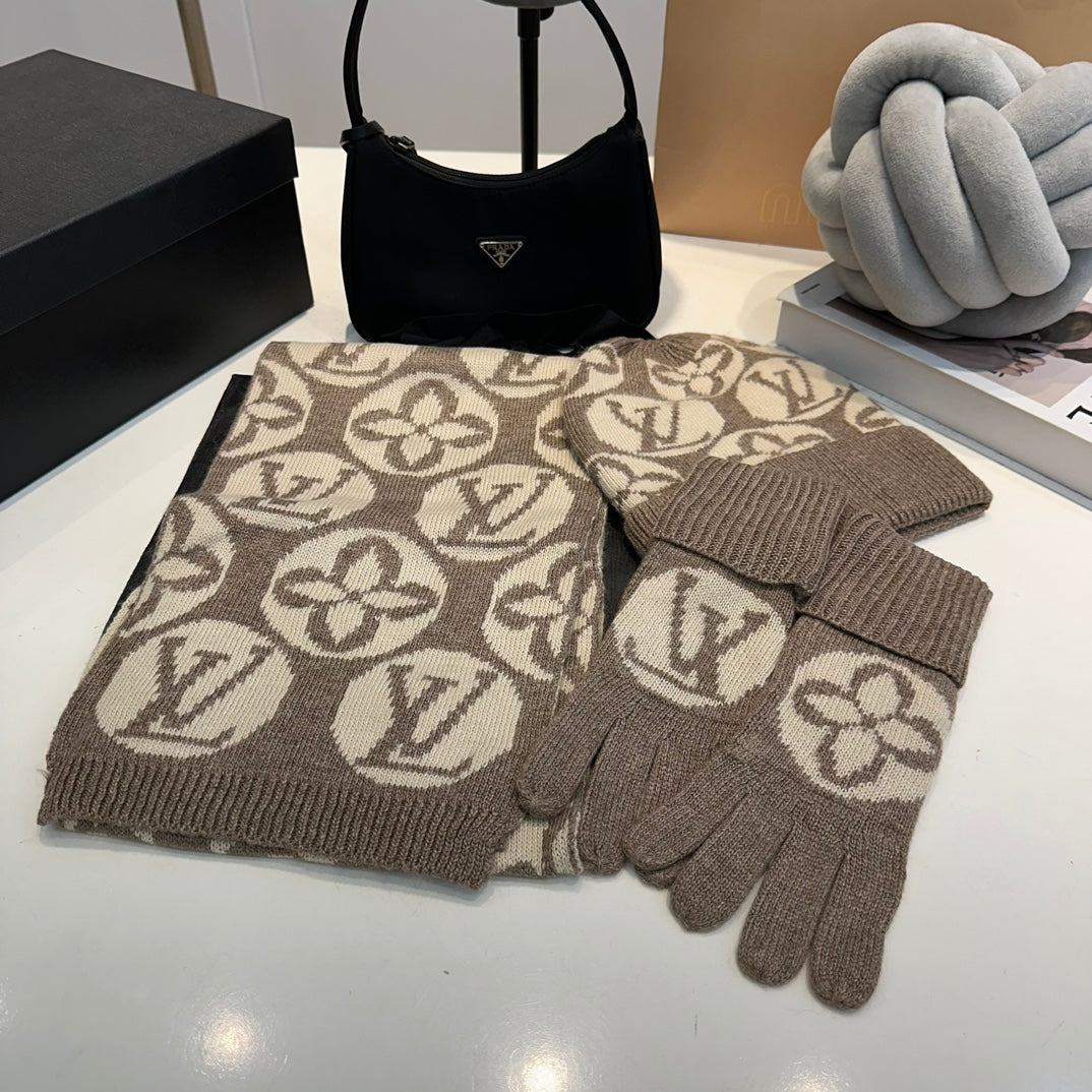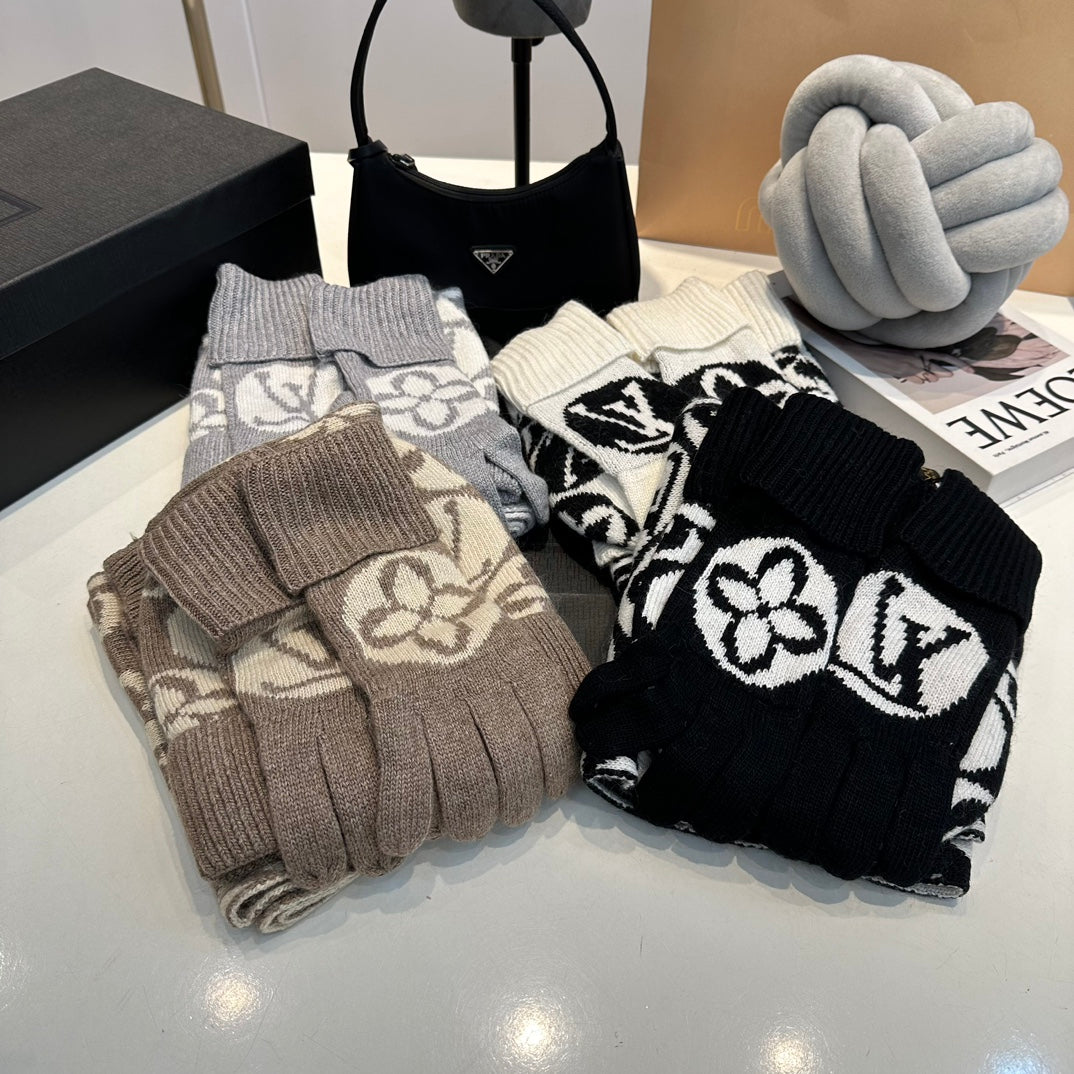 Vintage Floral Hat Scarf Gloves Set